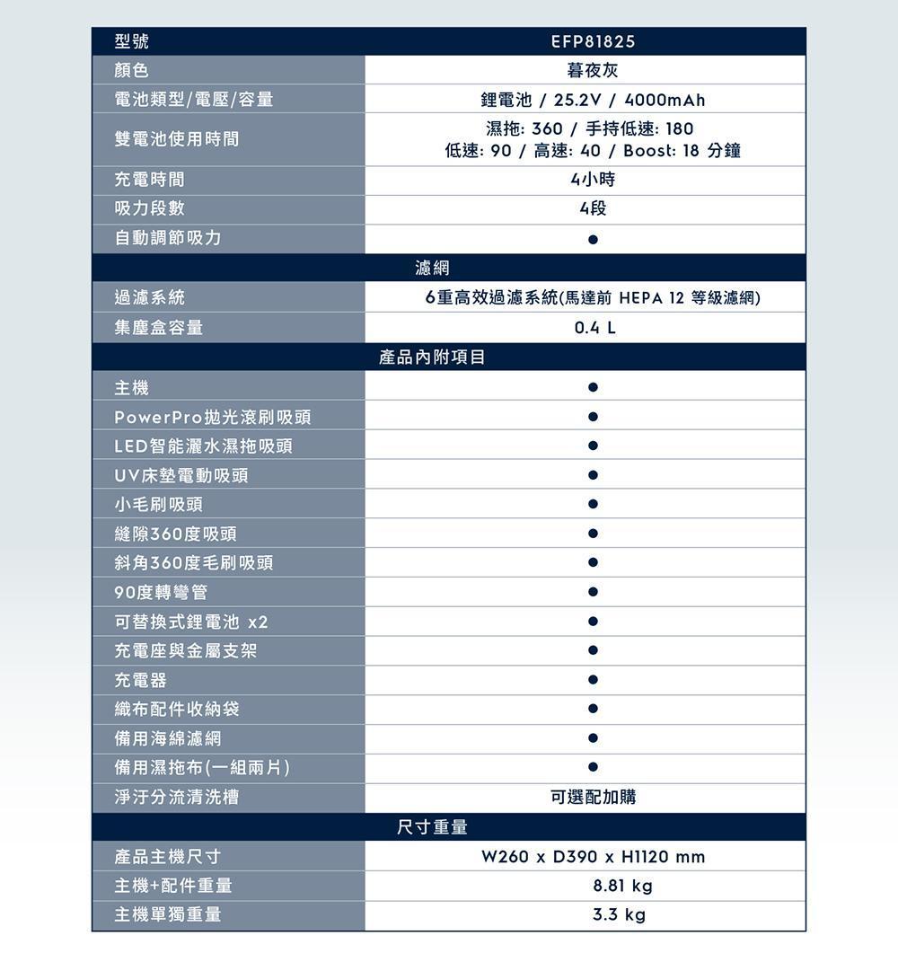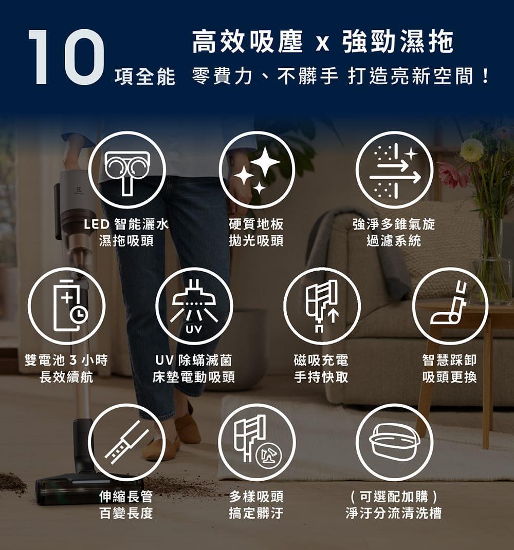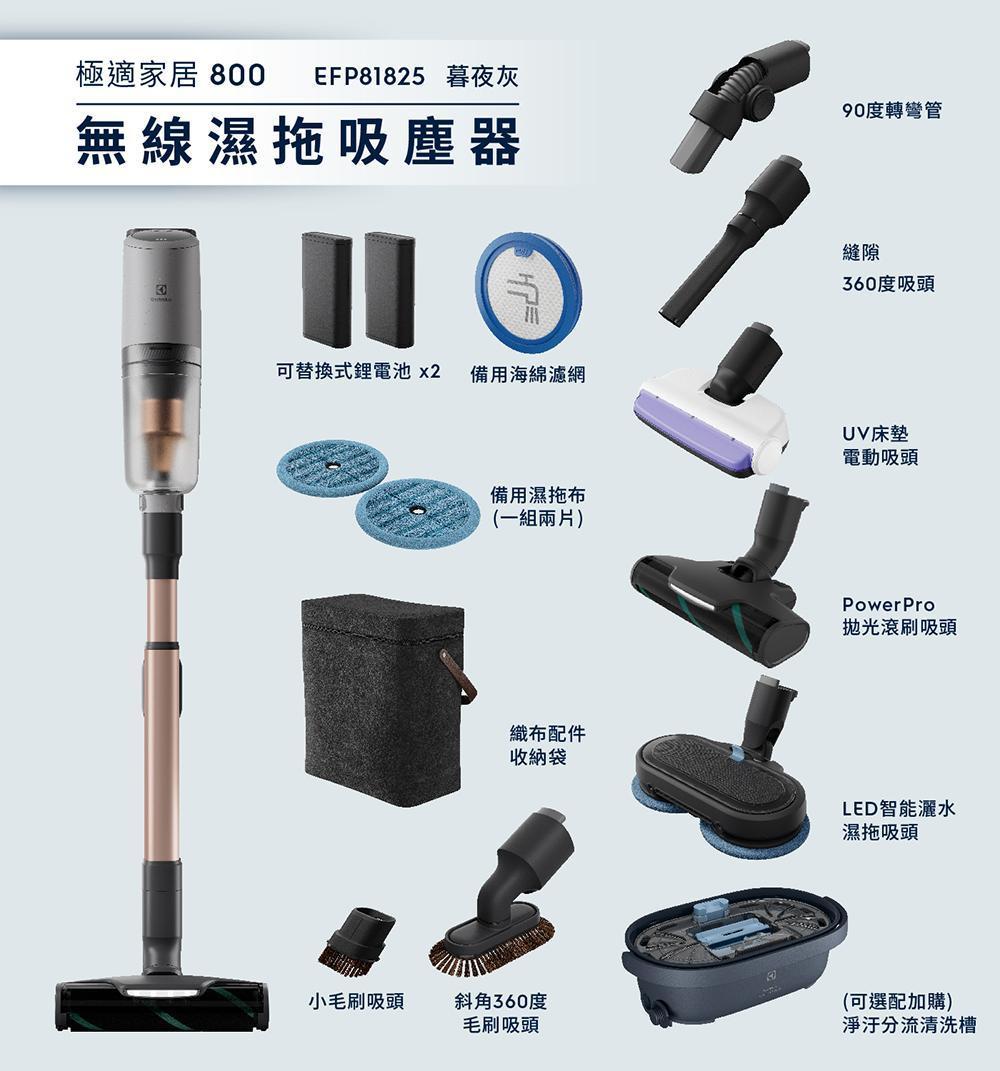 EFP81825 伊萊克斯 極適家居800 無線濕拖吸塵器 (暮夜灰)